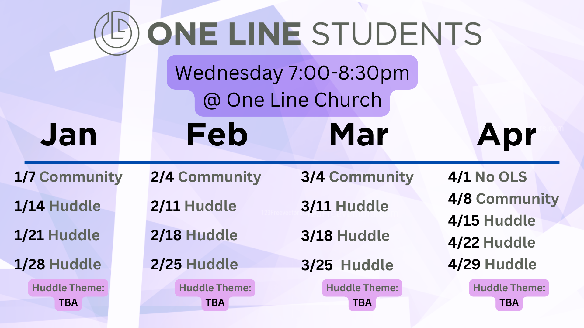 Join us on Huddle Night @ One Line to hang out, hear a message, and join a huddle around the topic!
